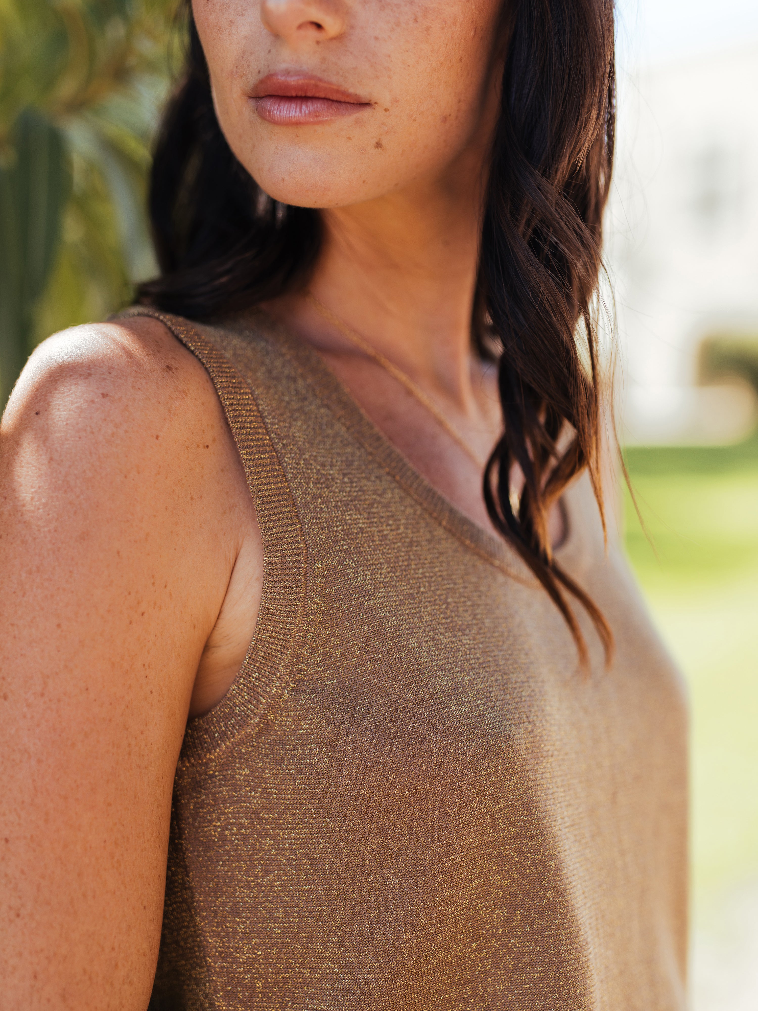 Ajoutez du glamour avec ce T-shirt scintillant ! Disponible en noir, argent et bronze, il illumine votre tenue. Parfait pour des soirées chics ou des sorties festives.