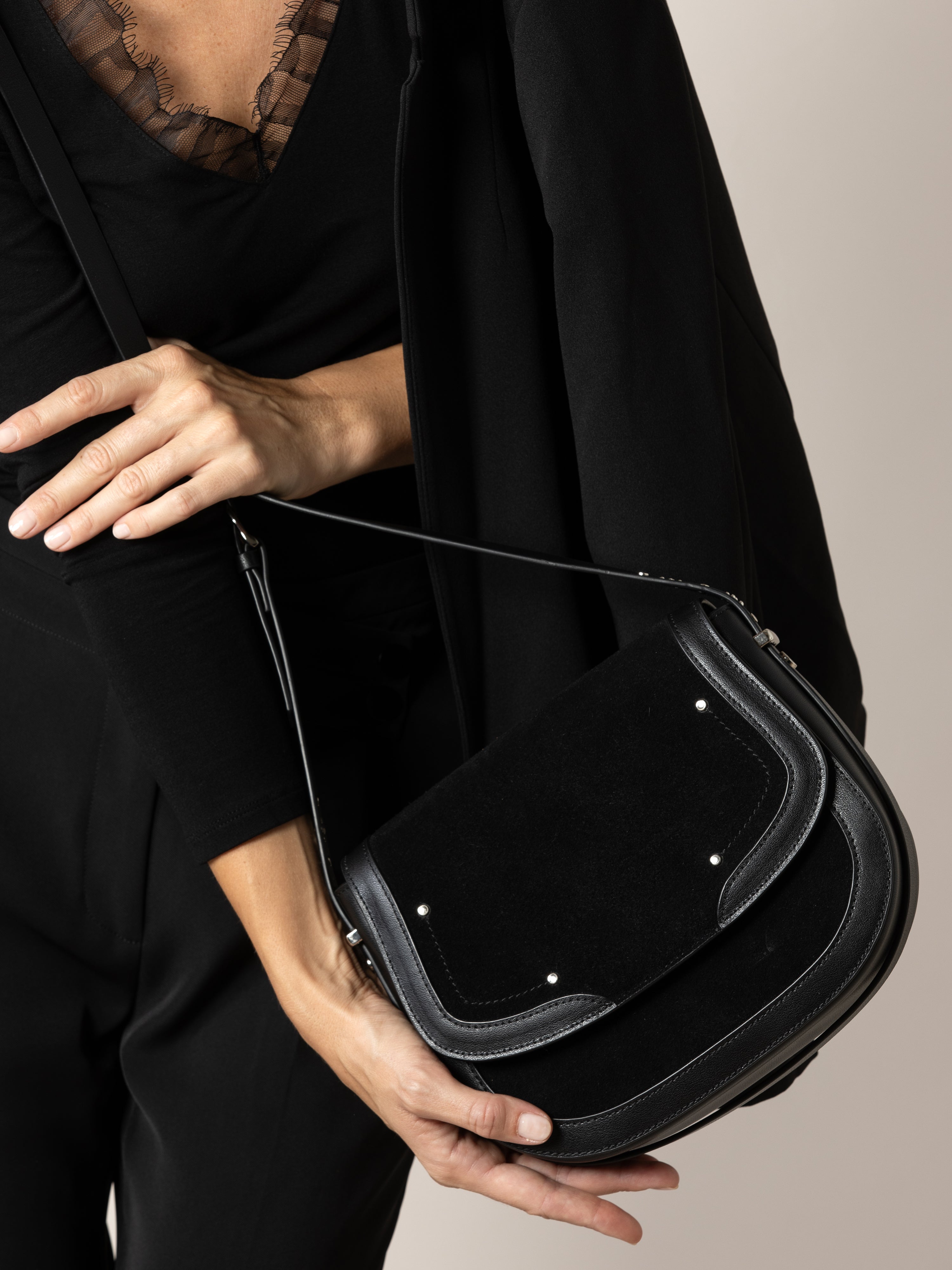 Alliez confort et style avec cette besace en cuir et peau. Son grand rabat et ses rivets métalliques lui confèrent un look moderne et tendance.