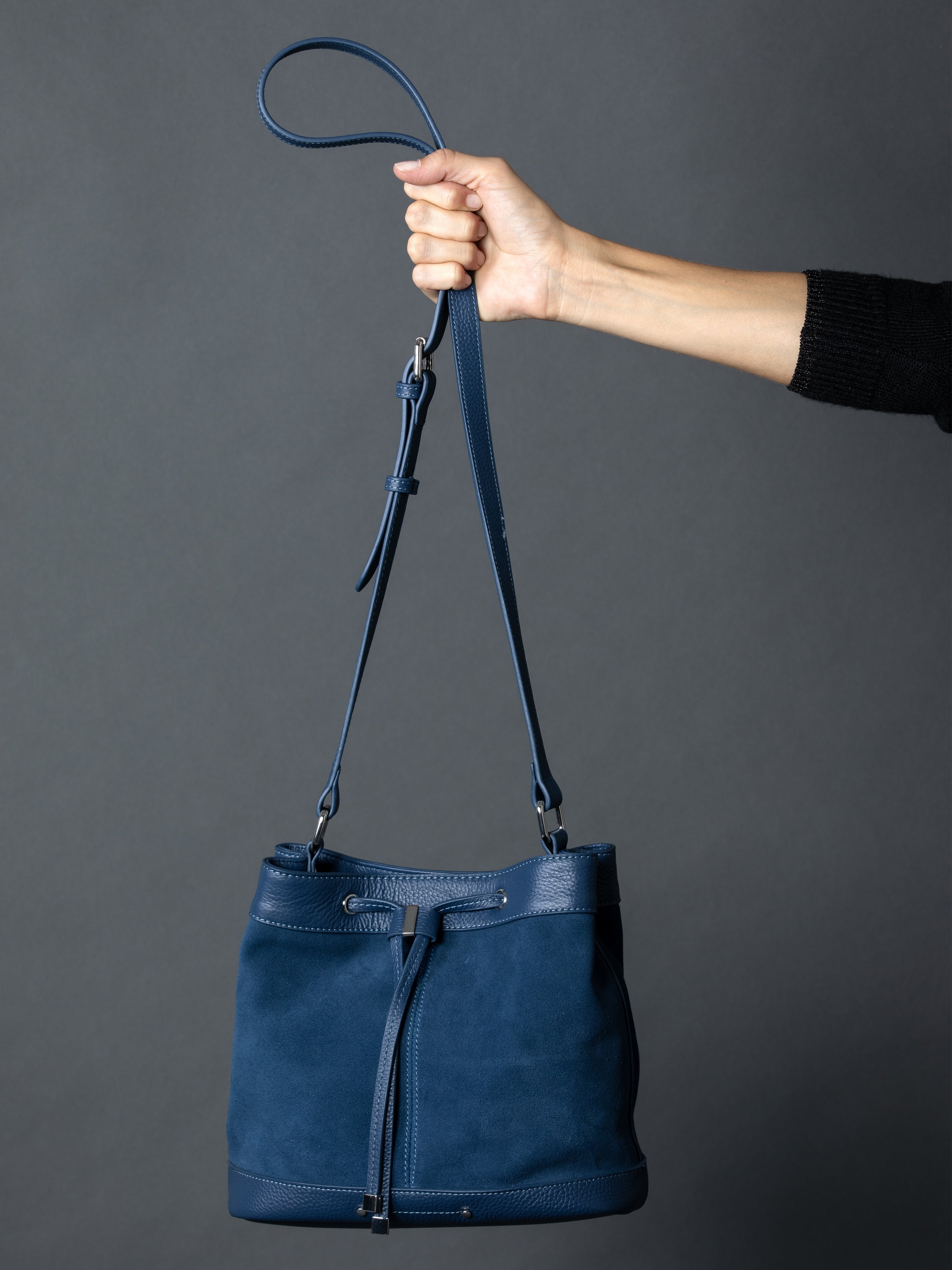 Le sac seau revisité pour la saison : cuir souple, peau raffinée et détails métalliques. Un must-have pratique et élégant à porter au quotidien.