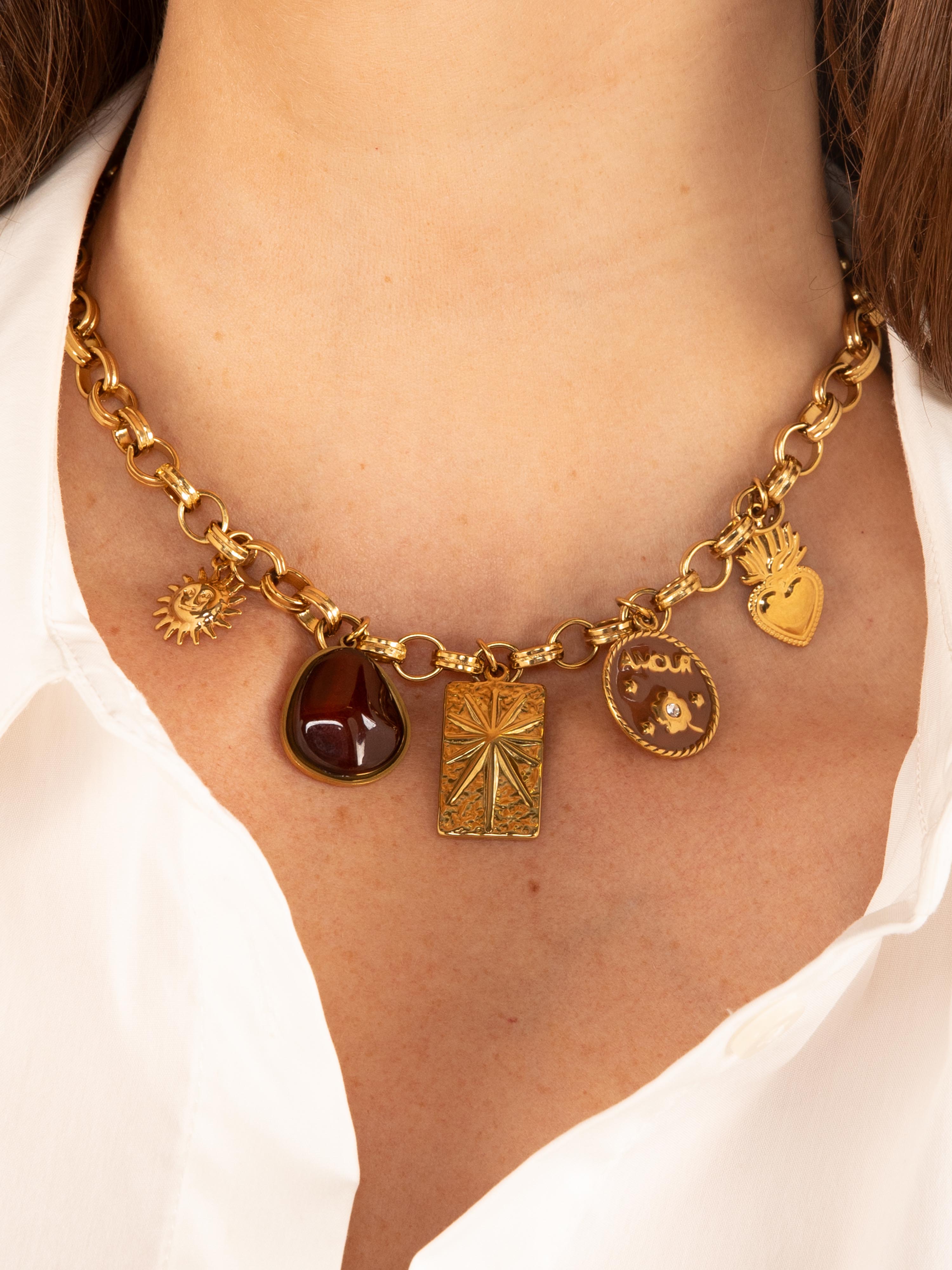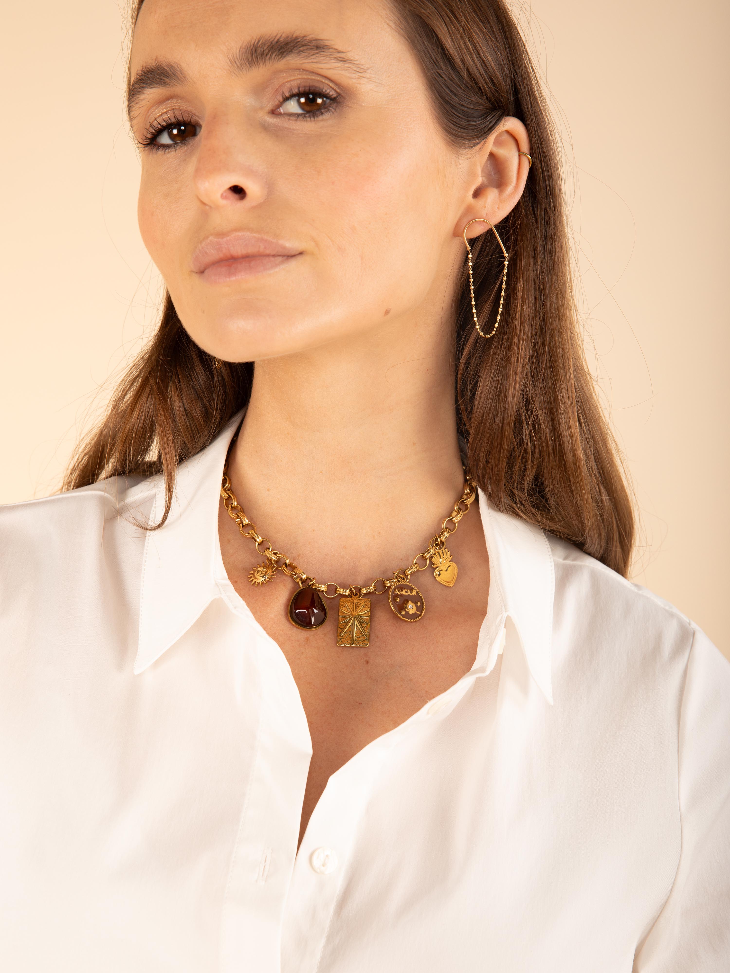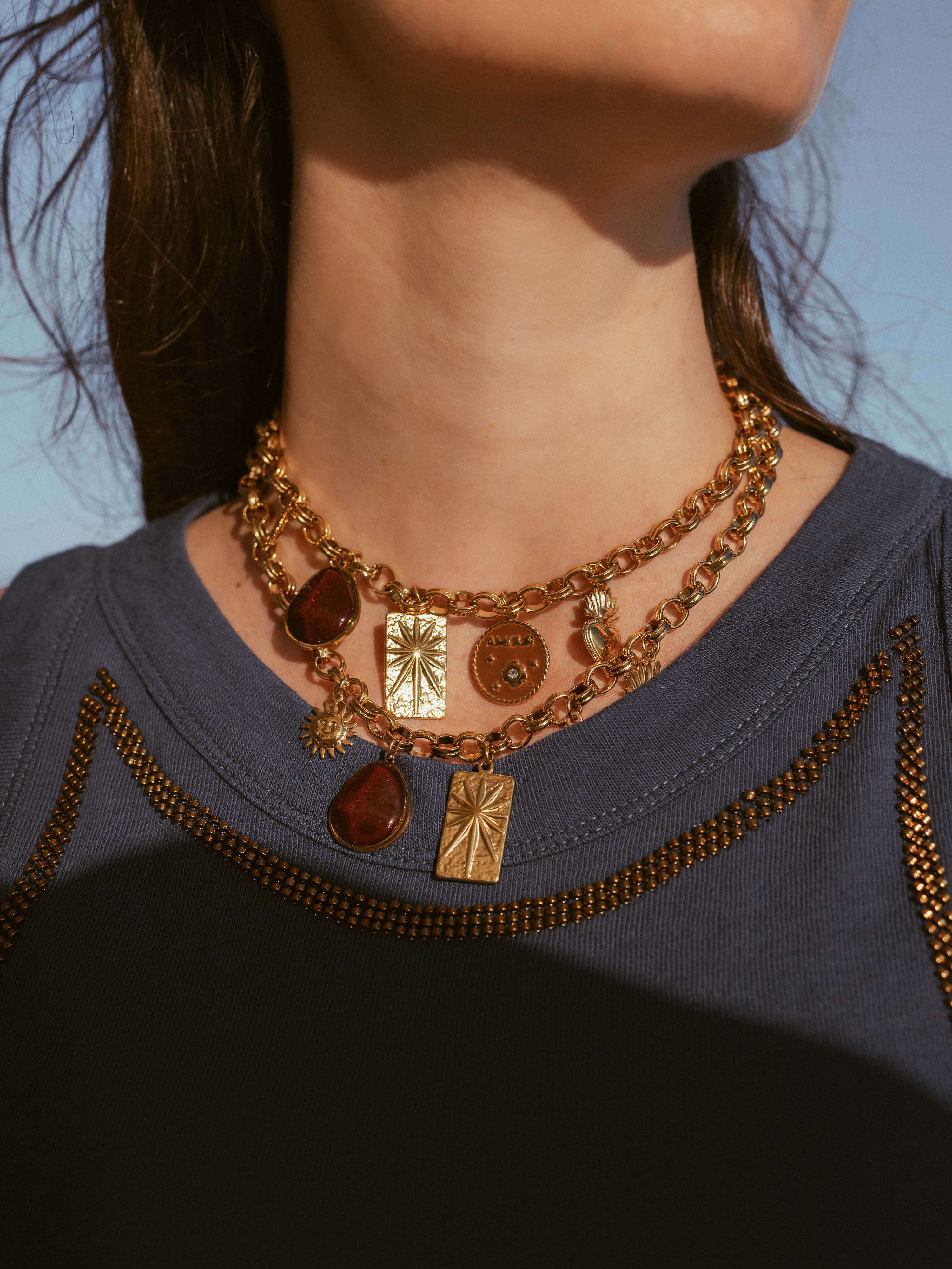Optez pour ce collier chaîne à charms, alliant style moderne et détails raffinés pour sublimer vos looks du quotidien.