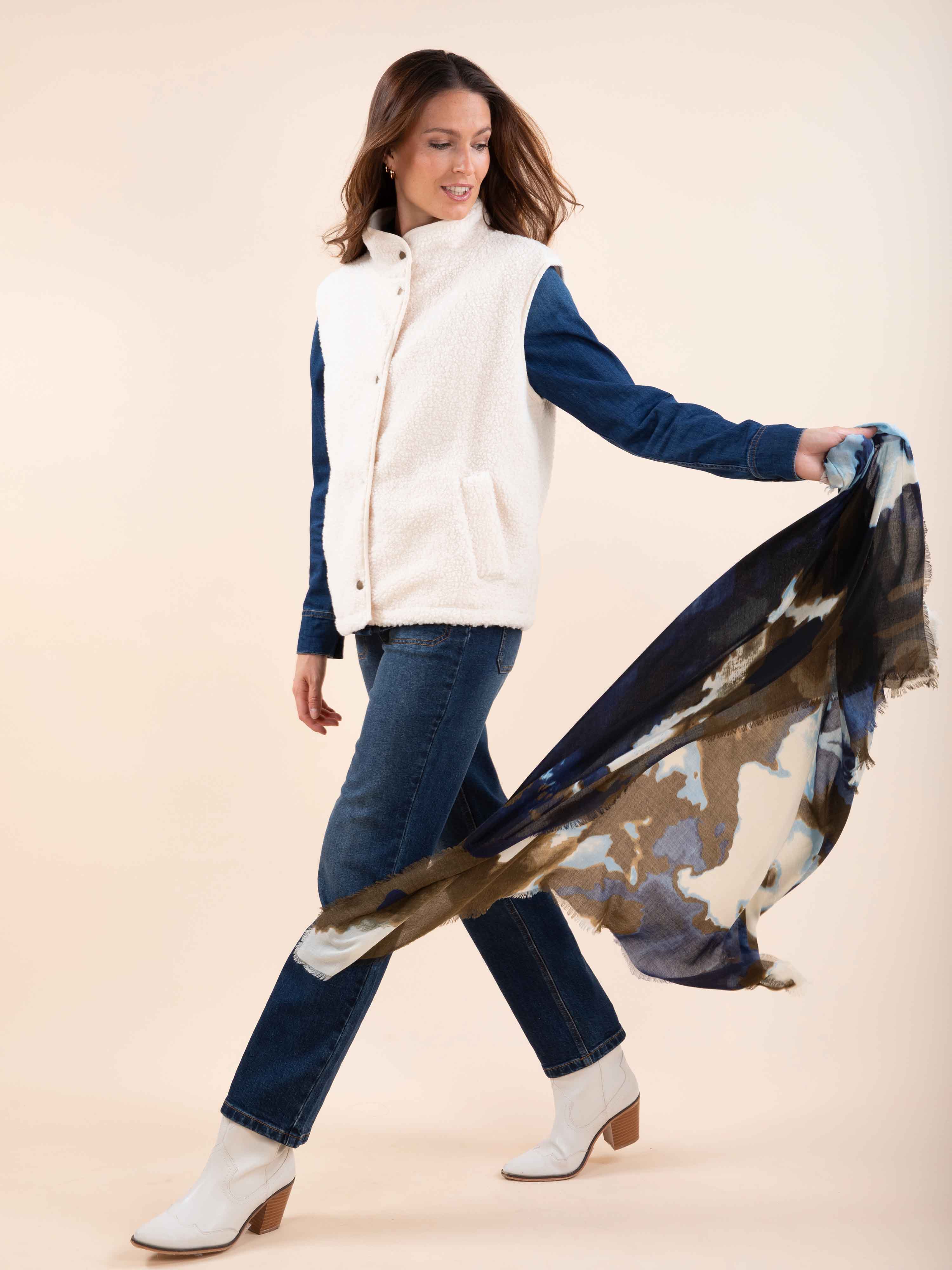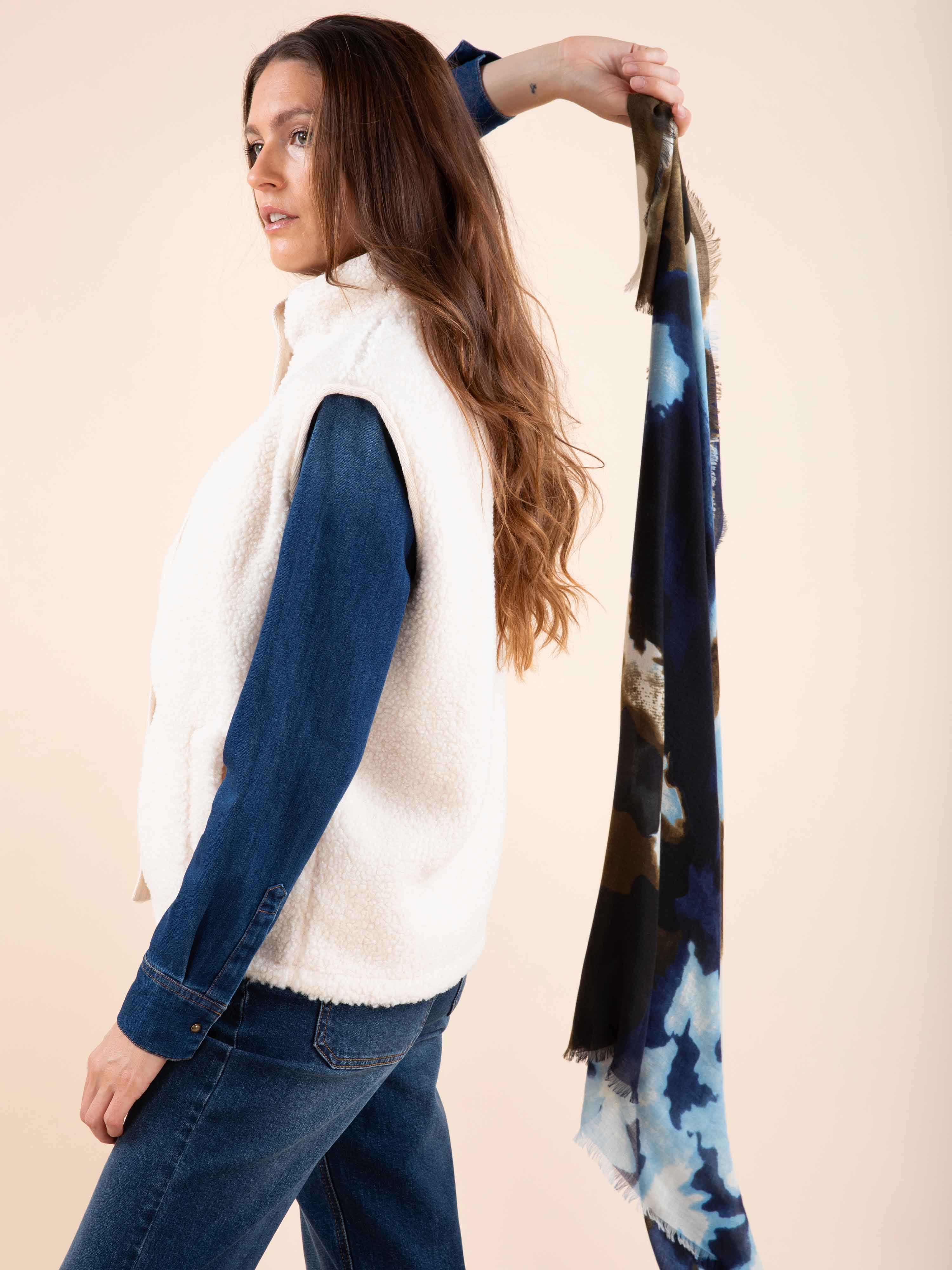 Adoptez ce foulard carré au motif tie & dye pour une allure à la fois bohème et contemporaine, à porter en toute saison.
