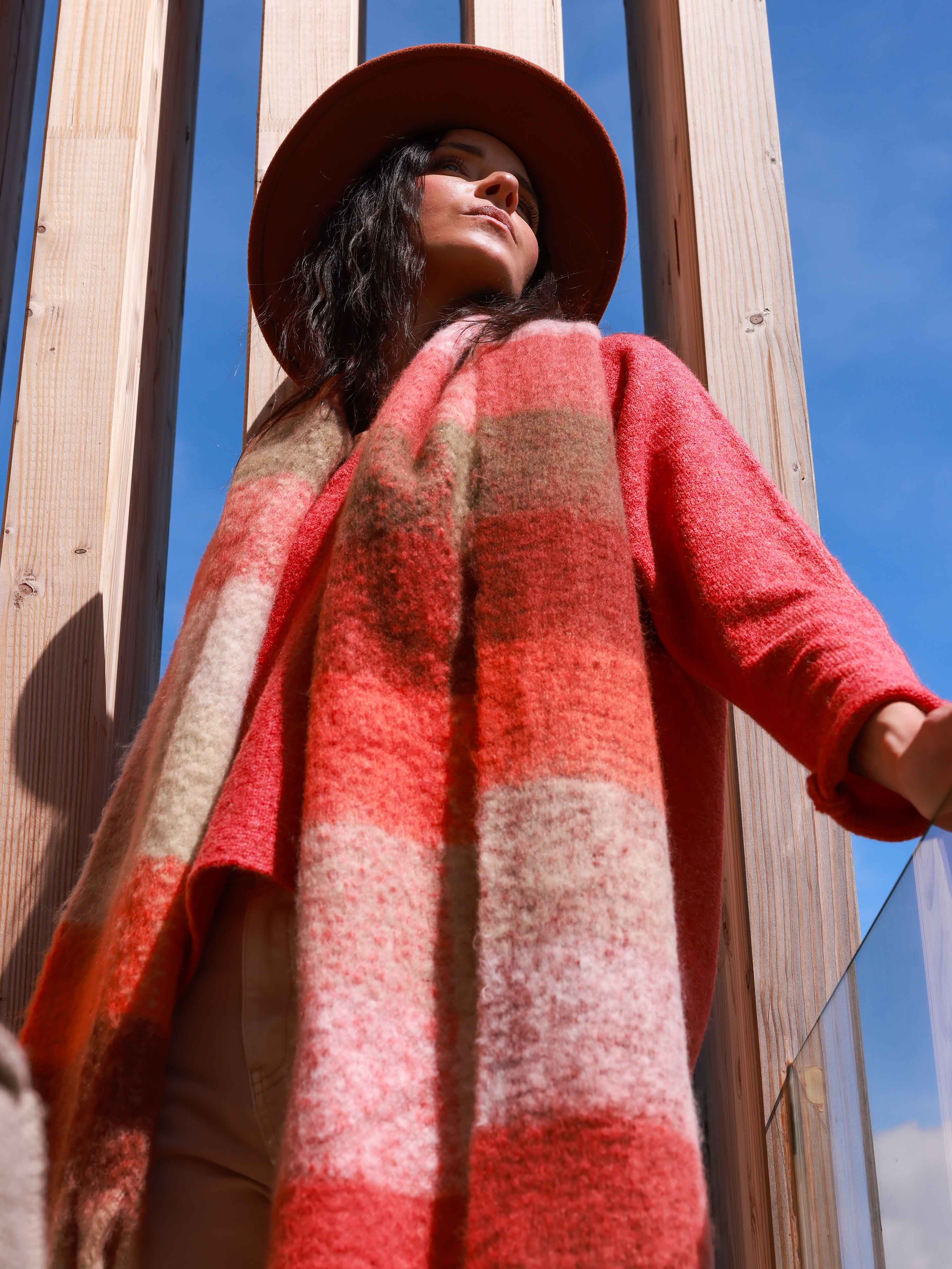 Enveloppez-vous de douceur avec cette écharpe à carreaux et ses franges, parfaite pour réchauffer vos looks d'hiver avec style.