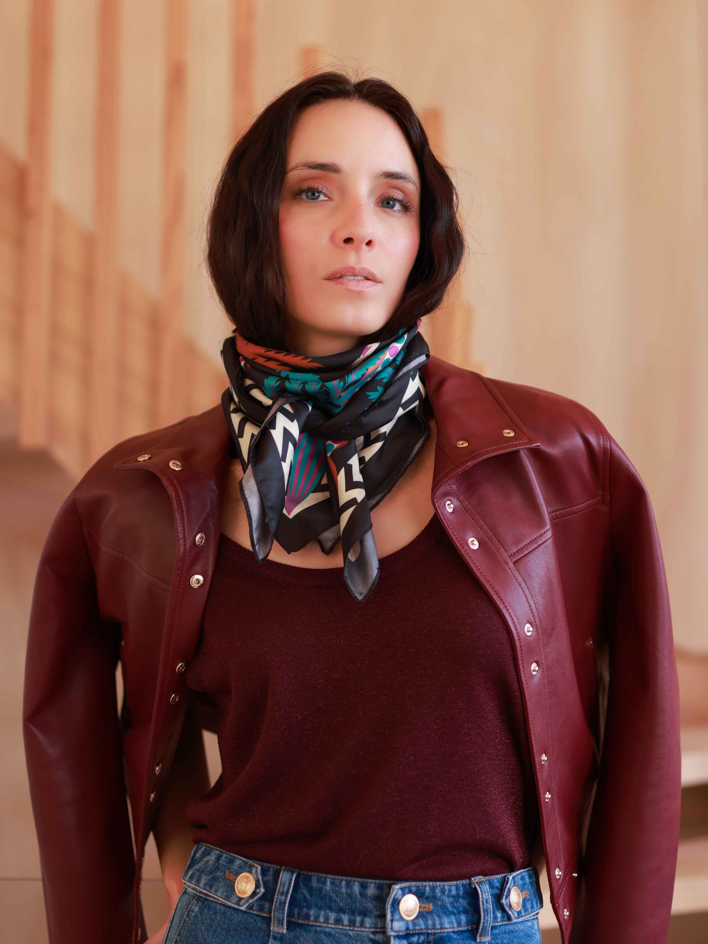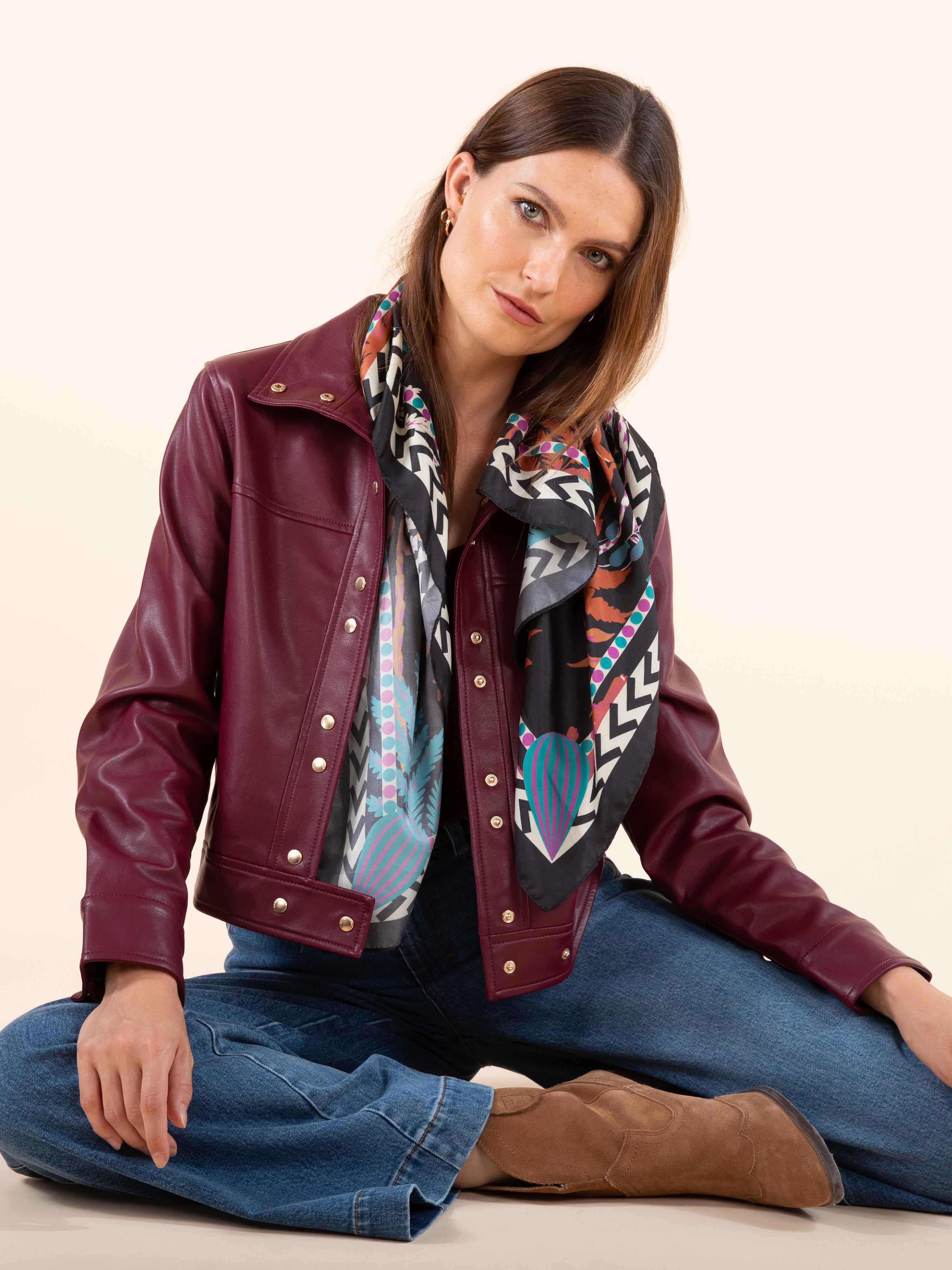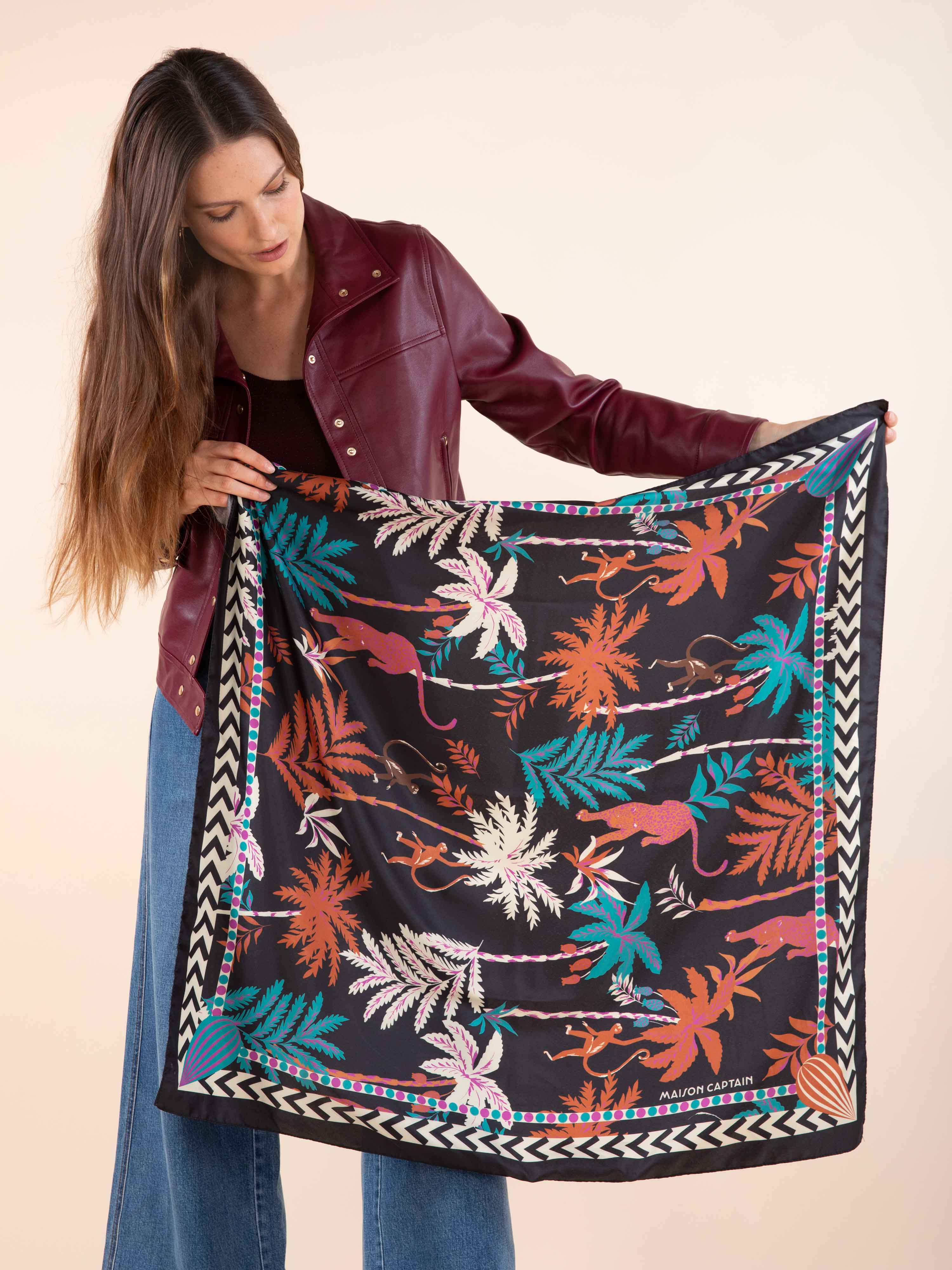 Apportez une note exotique à vos tenues avec ce foulard carré imprimé jungle, parfait pour twister vos looks du quotidien.